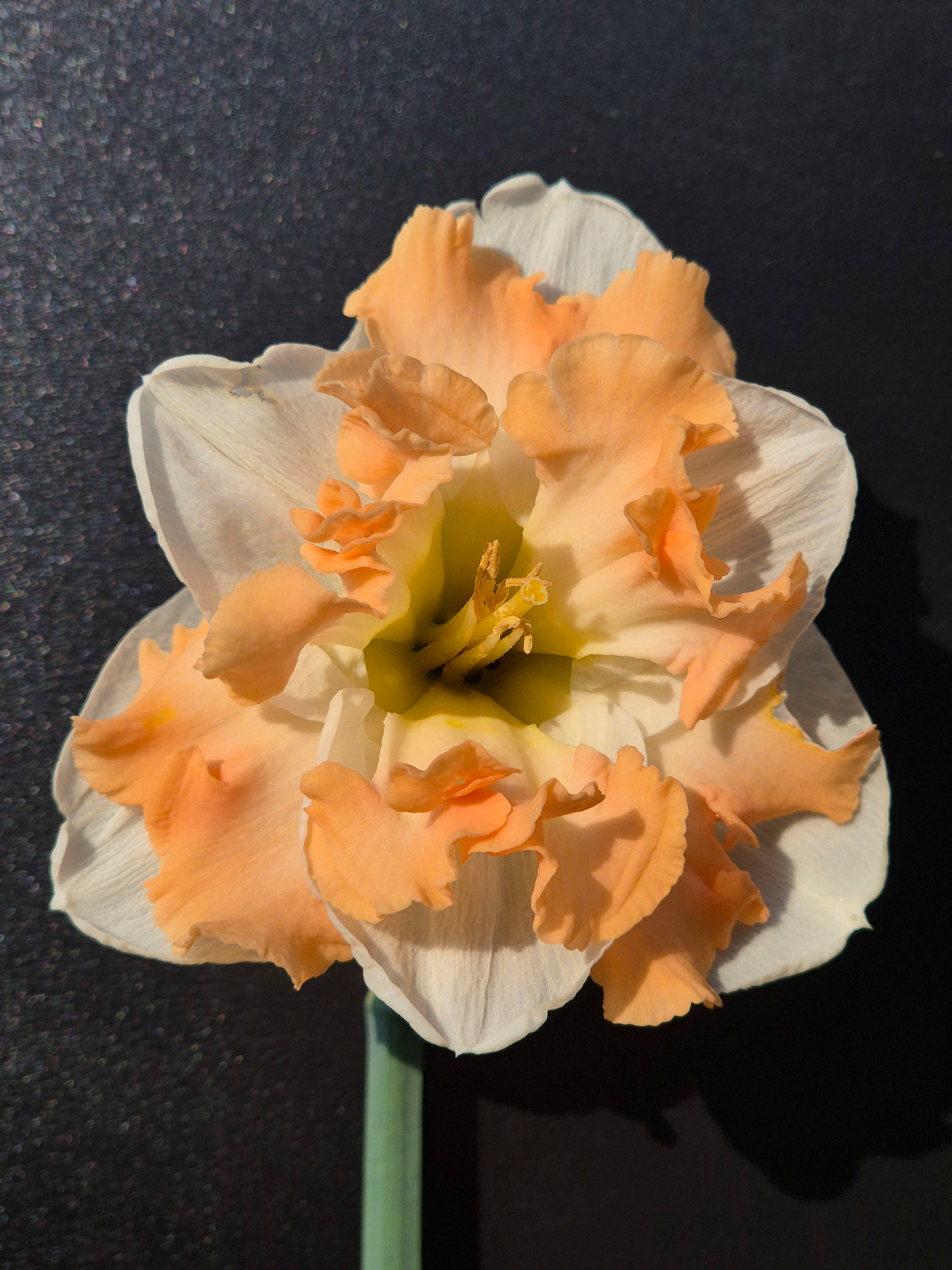 La Narcisse Cum Laude (ci-dessus) est aussi dans mon top 5. Elle est la première narcisse à fleurir. Cette fleur m'épate chaque année par son originalité et son atout d'être si précoce. Un vrai bijou juste avant le printemps! J'aime son style inattendu et sa légère odeur de menthe. Ses tiges sont robustes. Sa durée en vase est de 7 jours. On n'a d'ailleurs aucune envie qu'elle se fane. Bref, un véritable bijou à faire pousser ou à avoir en vase mi Mars si vous souhaitez épater vos amis.